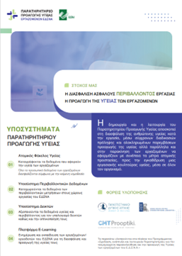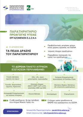 Κατά τον Μάϊο του 2024 σχεδιάστηκε η ενημερωτική αφίσα και το φυλλάδιο για την λειτουργία του Παρατηρητηρίου Προαγωγής της υγείας των εργαζομένων, ενώ στις 29 και 30 Μαΐου πραγματοποιήθηκε και η τοποθέτηση τους στους χώρους εργασίας του ΕΔΣΝΑ, προκειμένου οι εργαζόμενοι να ενημερωθούν για τη λειτουργία του Παρατηρητηρίου Προαγωγής Υγείας και να ευαισθητοποιηθούν για τη διαδικασία καταγραφής.